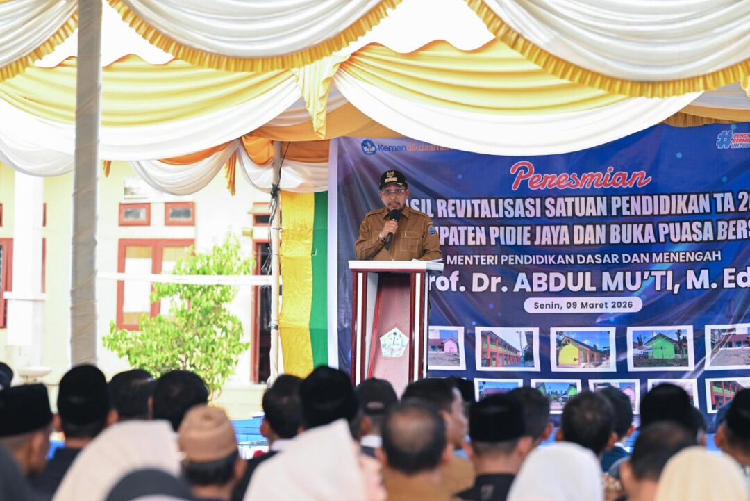 Kabupaten Pidie Jaya, 10 Maret 2026 — Dalam peresmian 29 sekolah hasil program revitalisasi yang terpusat di SMA Negeri 1 Meureudeu, Dinas Pendidikan Provinsi Aceh dan Pemerintah Kabupaten Pidie Jaya menyampaikan apresiasi terhadap kerja keras Kementerian Pendidikan Dasar dan Menengah (Kemendikdasmen) atas pelaksanaan program Revitalisasi Satuan Pendidikan yang berlangsung pada tahun 2025.