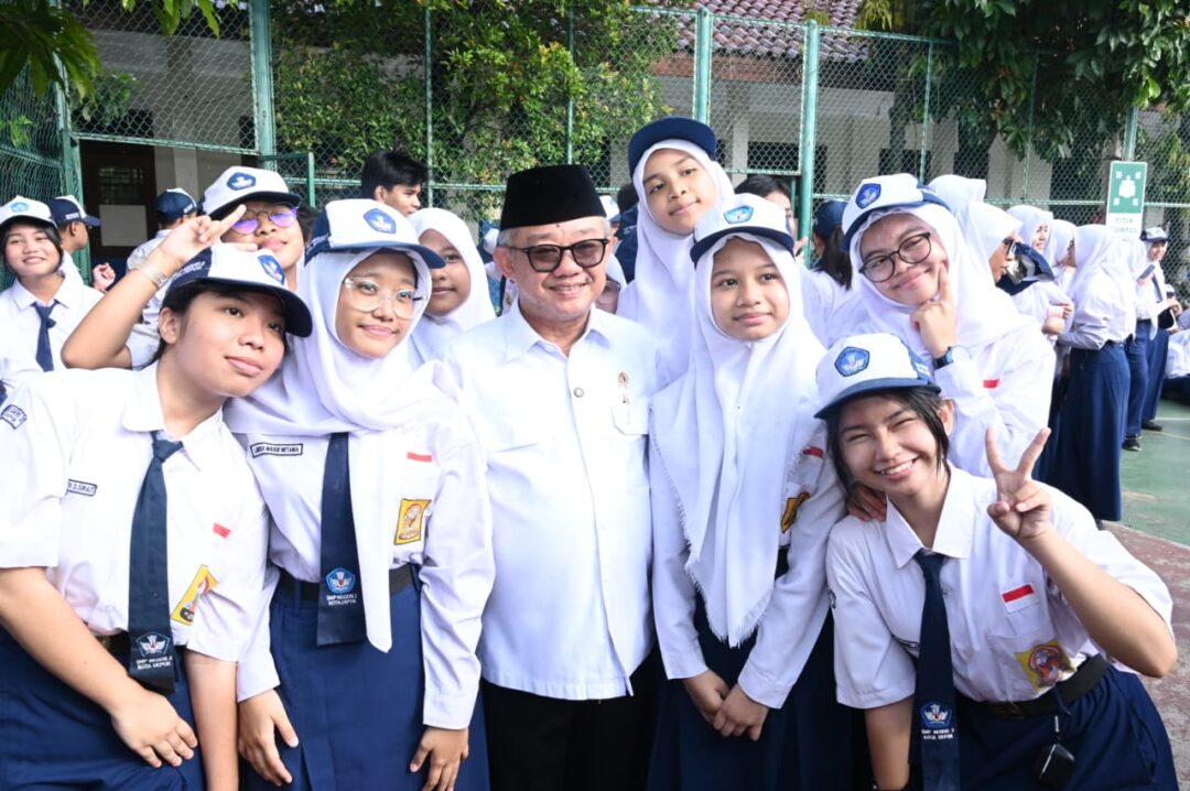 Depok, Jawa Barat, 30 Maret 2026 – Agenda pertama Menteri Pendidikan Dasar dan Menengah (Mendikdasmen), Abdul Mu’ti, pada hari pertama masuk sekolah selepas libur Hari Suci Nyepi dan Idulfitri 1447 H/2026 adalah berkunjung ke SMPN 2 Kota Depok dan SDN 8 Depok Baru, Provinsi Jawa Barat. Di sana, ia mengajak seluruh ekosistem pendidikan untuk bersama-sama mewujudkan Gerakan Indonesia ASRI (Aman, Sehat, Resik, dan Indah). Sementara itu, di lokasi kedua yakni SDN 8 Depok Baru, Abdul Mu`ti menyempatkan diri menyapa guru dan murid serta melihat aktivitas pembelajaran di kelas. Ia juga sempat bernyanyi lagu Rukun Sama Teman bersama murid SDN 8 Depok Baru yang di antara murid tersebut merupakan anak berkebutuhan khusus (ABK).
