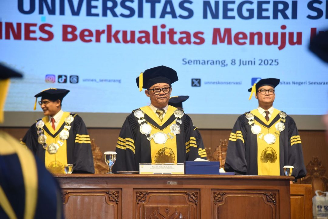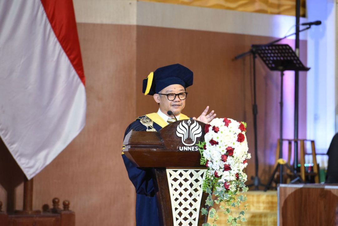 Dalam kesempatan itu, Mendikdasmen juga mengapresiasi kontribusi UNNES sebagai lembaga yang telah melahirkan guru-guru hebat dan berkualitas. “Kami sangat berharap UNNES dapat terus mendidik para guru sebagai tidak hanya agent of learning tetapi juga agent of civilization. Guru tidak hanya menjadi agen pembelajaran, tetapi juga agen dalam membangun peradaban,” tuturnya.