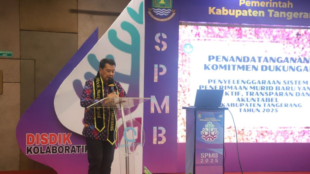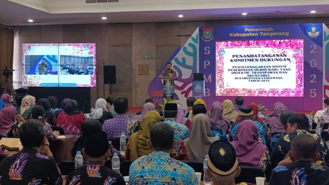 TANGERANG – Pemerintah Kabupaten Tangerang menunjukkan komitmen kuat dalam mendukung penyelenggaraan Sistem Penerimaan Murid Baru (SPMB) Tahun Ajaran 2025/2026 yang objektif, transparan, dan akuntabel. Hal ini ditegaskan dalam kegiatan Sosialisasi dan Penandatanganan Komitmen Dukungan Penyelenggaraan SPMB yang digelar pada Kamis, 15 Mei 2025, di Hotel Lemo, Kelapa Dua, Tangerang.