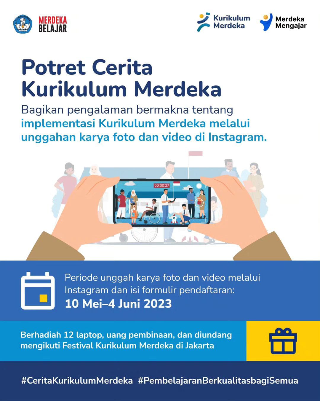Simak informasi selengkapnya mengenai kategori, persyaratan, dan tata cara pendaftaran melalui https://kurikulum.kemdikbud.go.id/kurikulum-merdeka/potretcerita/ dan ikuti akun Instagram @kurikulum.merdeka.