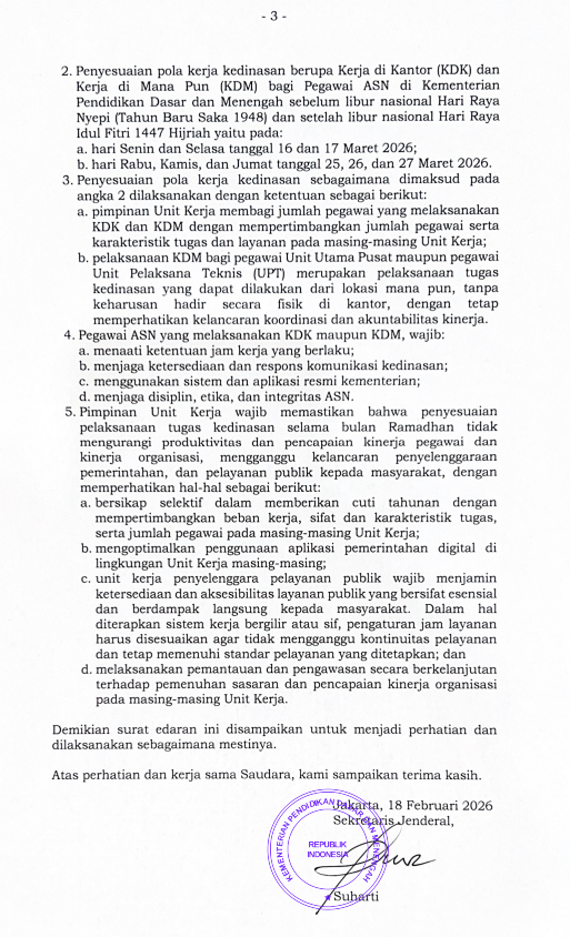Surat edaran tersebut dapat dijadikan sebagai pedoman dalam pelaksanaan tugas dan aktivitas kerja selama bulan Ramadan.